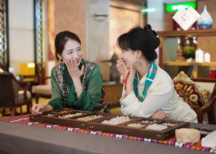 Placed about a 10-minute drive from Jinli Pedestrian Street, this 5-star Chengdu Tibetan Hotel-Free Welcome Tibetan Tea includes views over the Jialing River. All guests can enjoy high-speed Internet access in public areas and access to a fitness centre.